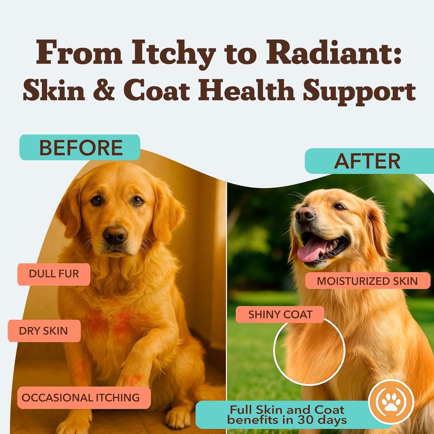 Googipet Dog Allergy Chews, Seasonal Dog Allergy Relief & Itchy Skin Relief, Skin & Coat Supplement +Bee Pollen, Colostrum, Coconut Oil, Probiotics, & Omega 3 Fish Oil for Dogs