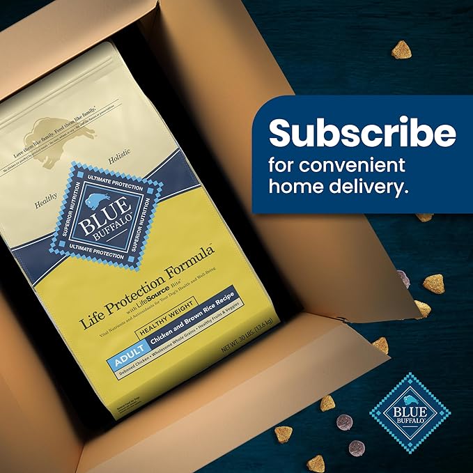 - Contains: One (1) 30-lb bag of BLUE Life Protection Formula Adult Healthy Weight Dry Dog Food, Chicken and Brown Rice