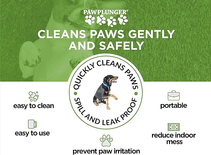- Cleanse pet paws & legs of mud, dirt, salt, sand, litter for sanitary home, car, carpet, furniture