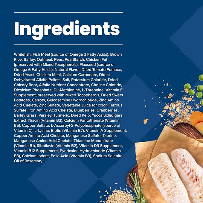 - REAL FISH FIRST: Blue Buffalo's premium dog food features high quality deboned whitefish as the primary ingredient; brown rice, cranberries and vegetables for a balanced diet; and high quality protein that promotes strong muscles