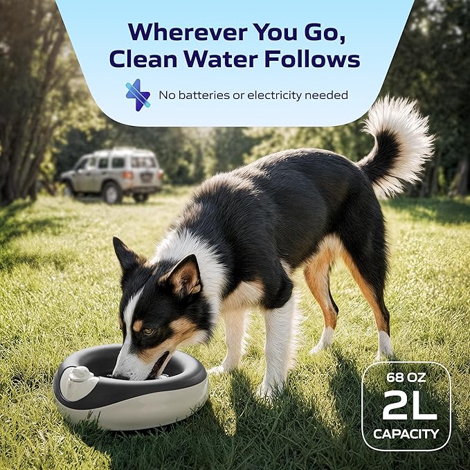 TORUS Filtered Portable Dog Water Dispenser [Upgraded 2025], 2L / 68oz, Automatic Pet Water Dispenser Noise-Free No Spill Water Bowl for Dogs, No Power Needed, Ideal for Medium & Large Pets