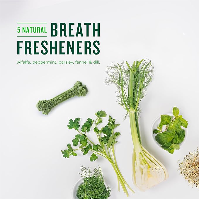 - FRESHENS YOUR DOG'S BREATH: Minties Dog Dental Treats contain five breath fresheners: alfalfa, peppermint, parsley, fennel, and dill.