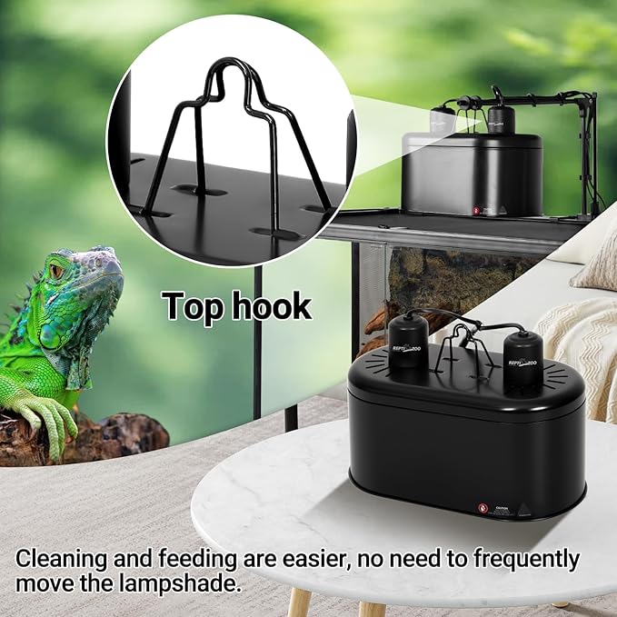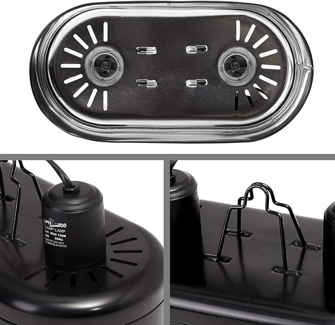 - Dual lamp cap integration design, each can bear Max 150W(suit for Reptile ceramic heat lamp, UVB UVA basking spot lamp, UVB lamp, daylight lamp, nightlight lamp, Infrared Spot Lamp, and so on)