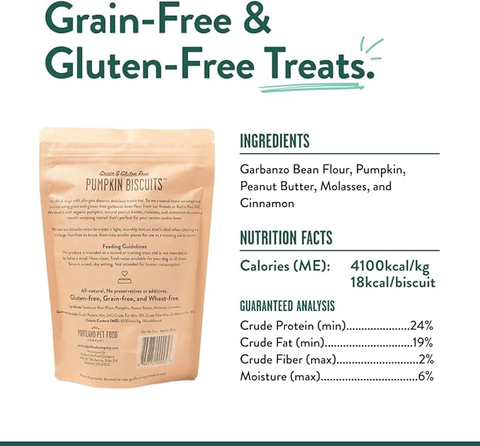 Portland Pet Food Company Pumpkin Dog Treats Healthy Biscuits for Small Medium & Large Dogs - Grain-Free, Human-Grade, All Natural Cookies, Snacks & Puppy Training Treats - Made in The USA - 5 oz
