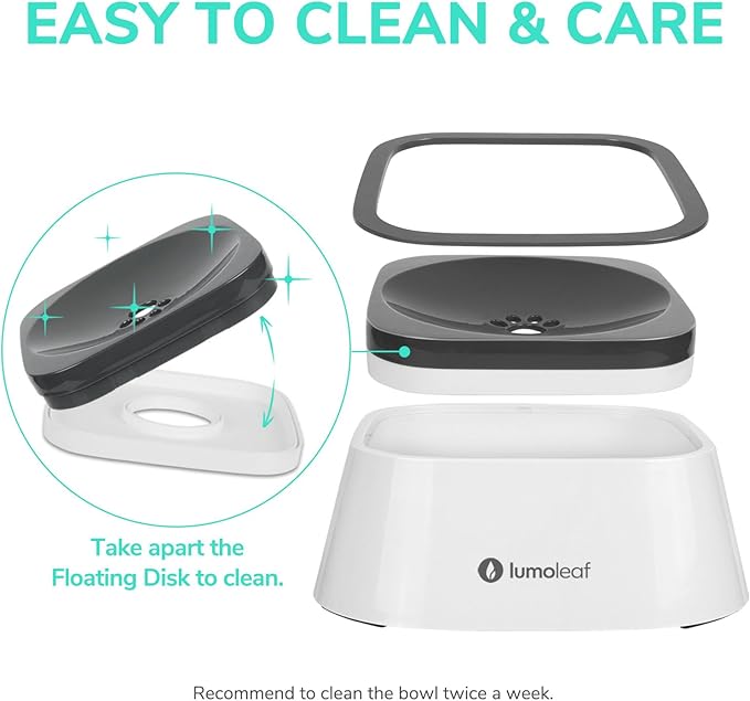 - ❤️ NO MORE MESSY FLOORS with LumoLeaf Pet Water Bowl. The Floating Disk and Anti-slip Base can effectively prevent water from splashing and overflowing.