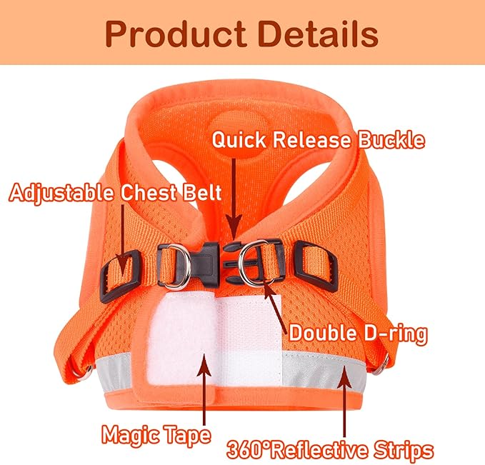 - Escape Proof Kitten Harness and Puppy Harness: Please take your puppy or kitten measurements carefully before buying. Is an escape proof harness when you have the correct size with a snug fit. And the adjustable strap creates a perfect fit for your kitty with some room of growth. Escape-proof kitty harness has reflective strips design, enhance your pet’s visibility for those early morning and late evening strolls.