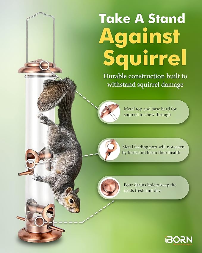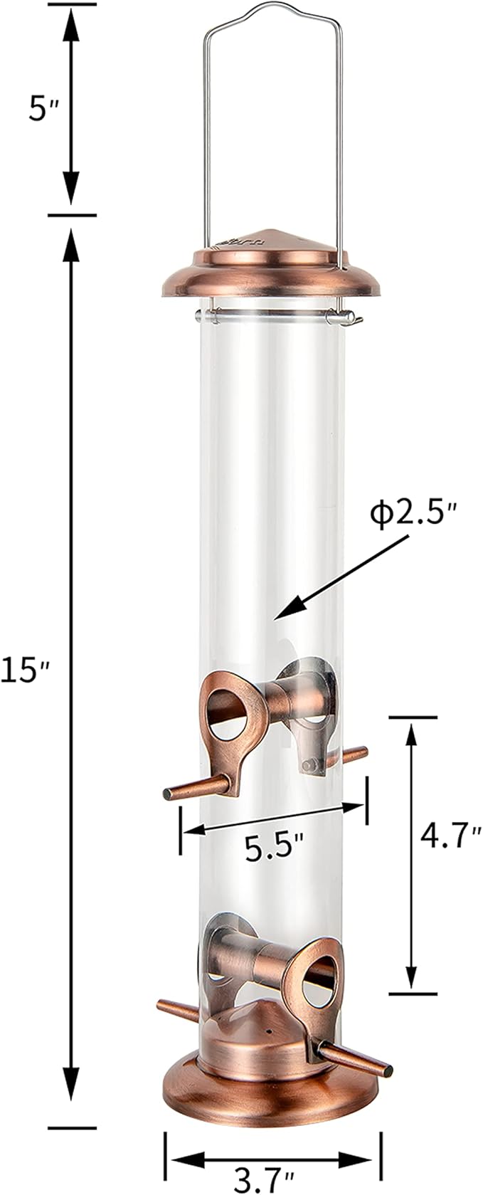 - 【Coppper Finshing, Great for all the year round feeding】Wear and Worn, Never Rust. All Metal top, base, feeding ports, perches, copper power-coat, rust resistant, robust construction to sustain all weather days. It features vintage copper outlook, traditional design inviting more feather birds to your garden, add more liveness to your garden life.