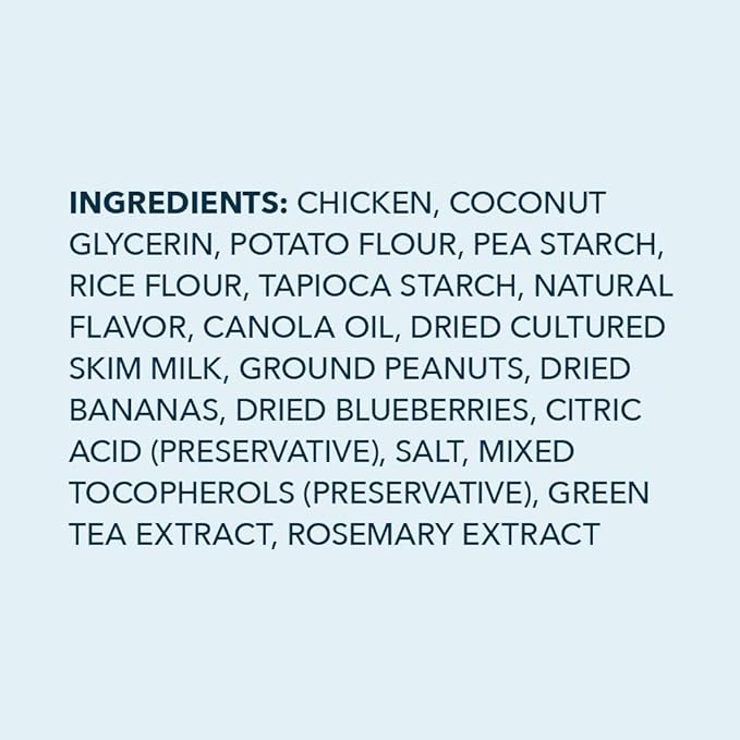 - American chicken is the #1 ingredient, enhanced with peanut butter and banana flavors from ground peanuts and dried bananas