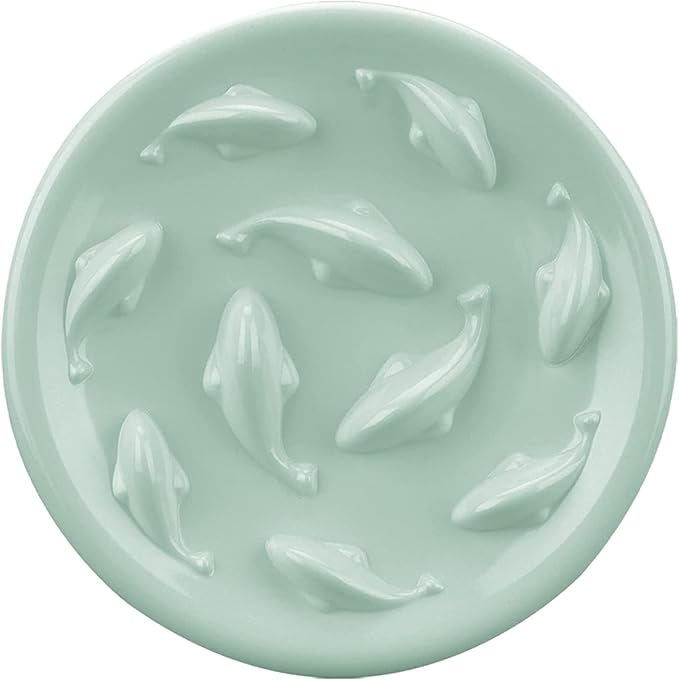 Slow Feeder Bowl for Cats and Small Dogs,Cilkus Fish Pool Design, Fun Interactive Bloat Stop Puzzle Feeder Bowl Healthy Eating Diet Made of Melamine Food Grade Material Dishwasher Safe (Green)
