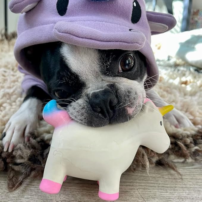 - 3 PACK TOY ASSORTMENT FOR MAXIMUM FUN: Featuring a rubber unicorn squeaky toy, a stuffing-free raccoon rope toy and a microfiber plush elephant squeaky toy, these safe, non-toxic dog teething toys maximize playtime for your pup!