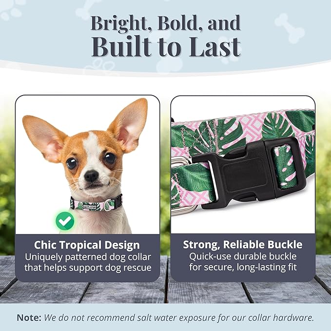 Lucky Love Dog, Tropical Matching Dog Collar & Leash Set, Soft & Comfy, Vivid Pink Color Collar and Leash for Female Male Dogs - (X-Small, Laguna Combo)