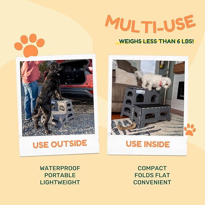 - Lightweight: Our dog step is designed to be convenient to carry and weighs just 5.75lbs. It is only 1.5 inches thick when folded!