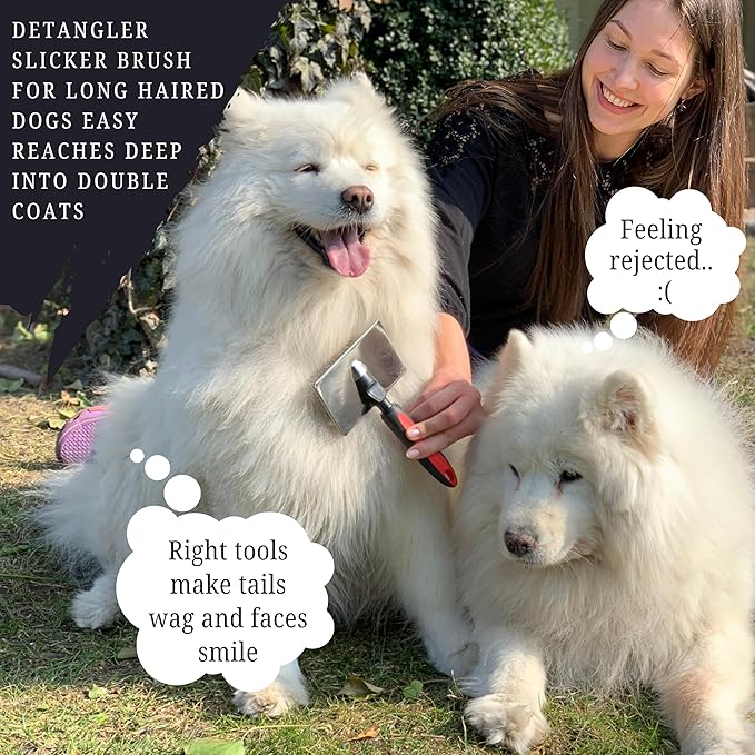 - Ergonomically designed for pet owners - Doodle hair slicker brush is comfortable to hold and use. You will feel like it belongs in your hand. With non-slip grip won't be any mishaps due to slippery hands or moist handles during your grooming session