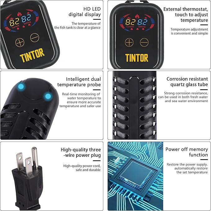 - 🐠【POWER-OFF MEMORY FUNCTION】 When it recovers after a power failure, without any operation, the heater will automatically restore to the temperature setting before the power-off, saving you the trouble of resetting the temperature