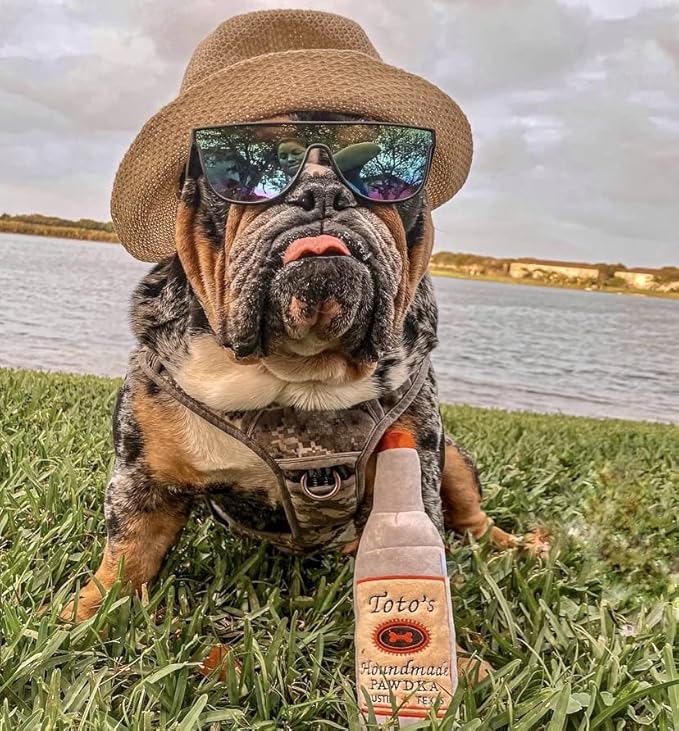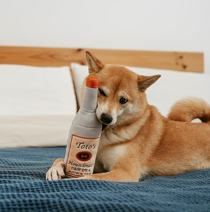 - PERFECT SIZE - 9.5 inch stuffed dog toy, making it perfect for small dogs, medium dogs, large dogs, girl dogs, boy dogs, and all dogs. (Very small dogs still can drag it around by the neck of the bottle and it's hilarious)