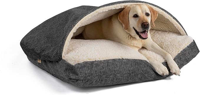 - LIKE A HUG FOR YOUR DOG! Is your dog a cuddler? A burrower? The Cozy Cave dog bed is just what you’re looking for! The hooded dog bed design lets your dog snooze between layers of soft Sherpa lining for enveloped comfort and coziness. Made to appeal to a dog’s natural instincts for burrowing, the Cozy Cave is the best dog bed for dogs who love sleeping under blankets. The Cozy Cave gives them a place to relax with a feeling of safety and security for less anxiety and more restful sleep.