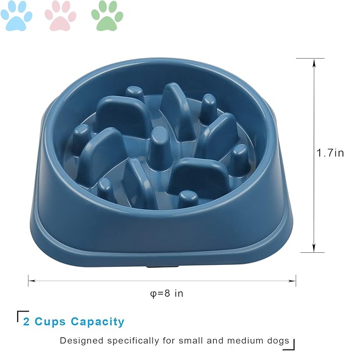 UPSKY Slow Feeder Small Dog Puzzle Bowl Feeder - Anti-Slip, Anti-Bloat, Anti-Choking - Deep Blue