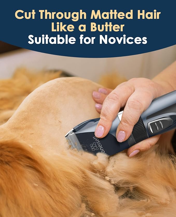 oneisall Quiet Cat Clippers for Matted & Long Hair, 2-Speed Cordless Pet Shaver Grooming Kit for Cats, Small Dogs & Animals (Blue)