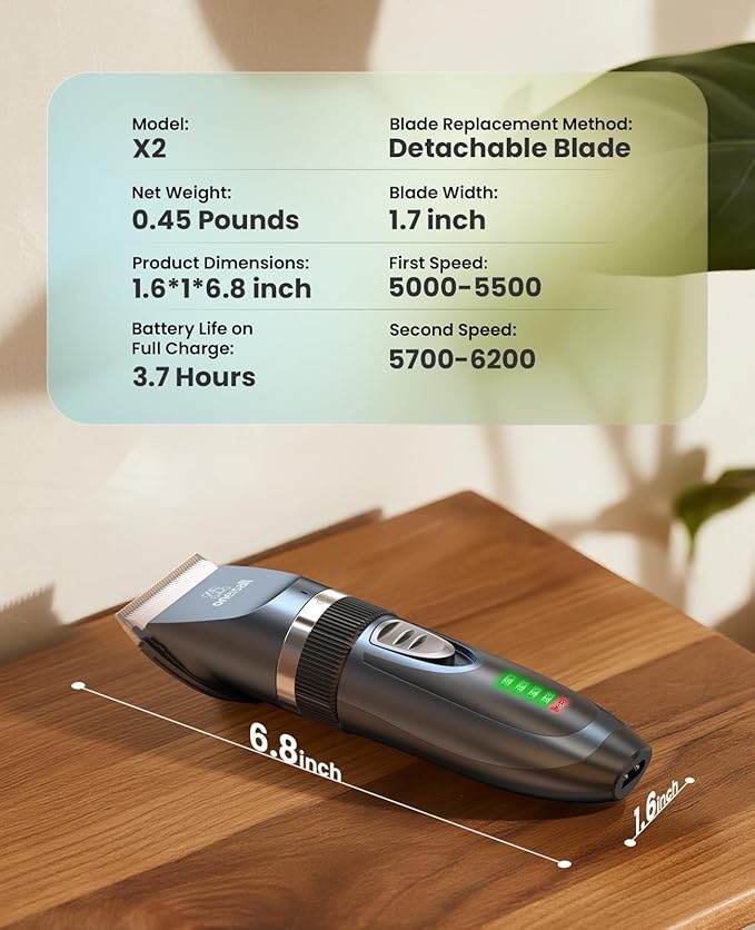 - Intelligent LCD Indication: This cat clipper is designed with a LCD display,for reminding using and charging status,helping you better control the grooming work. Easy to see how much power is left.
