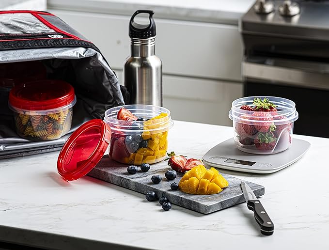 - 16 oz 20 Pack Twist Top Containers Clear bottom With Red Top Twist on Lids Reusable, Stackable, Food Storage Freezer Container