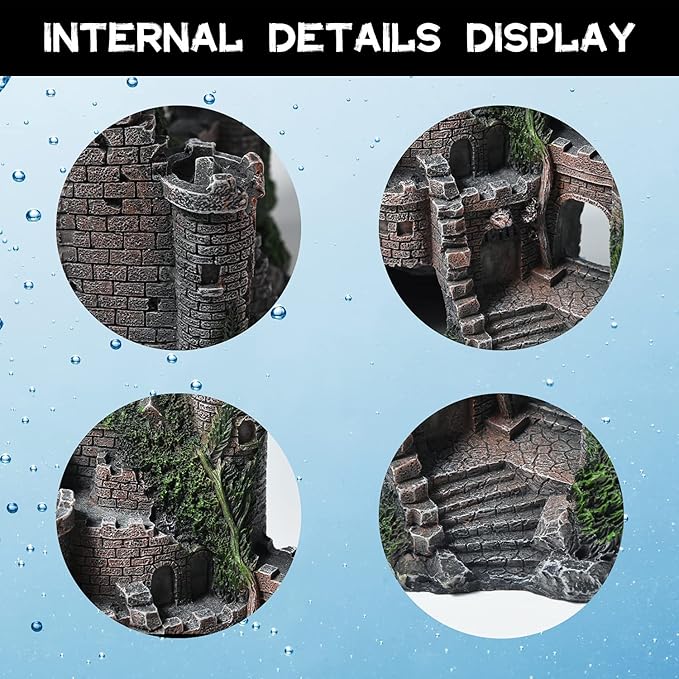 - Appearance: The castle decorations sculpture creates a lifelike environment. Fish tank decorations can be connected to an air pump to add more fun to the fish tank. Aquarium bubbler decorations can add more flavor to your fish tank