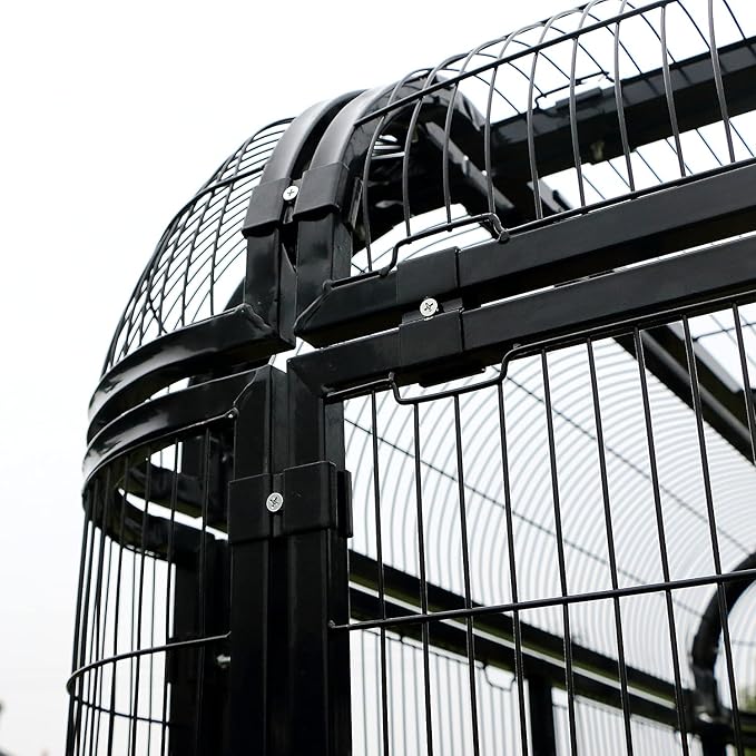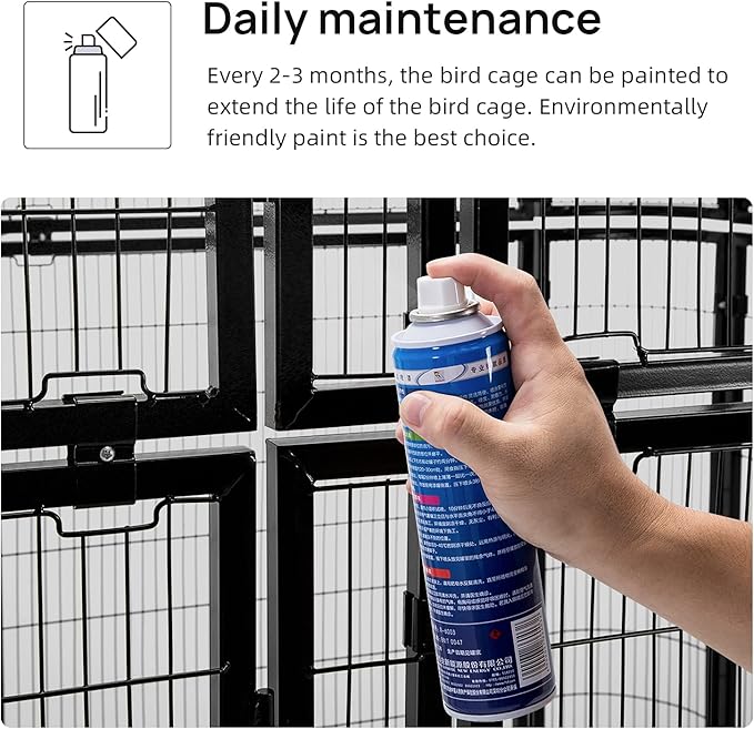 - Good Quality - Durable iron frame construction features excellent shock, rust, corrosion, tarnish resistance, which prolongs the service lifetime of the cage. Please do not expose the birdcage directly to rain. Otherwise it will rust easily. When it rains, please put on a birdcage cover or move indoors.