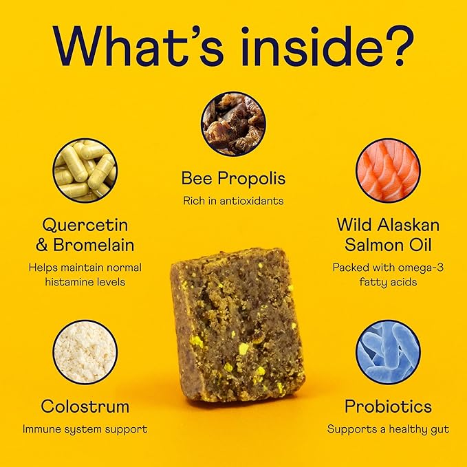 - Seasonal changes got your pup scratchin'? This tasty chew’s got your pup covered with support for season allergies and immune function. Helps maintain healthy skin and supports pups prone to occasional scratching or paw licking.