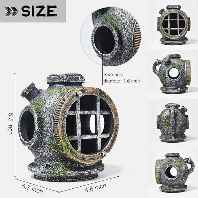 PTFJZ Fish Tank Decorations Betta Fish Accessories Disney Aquarium Decorations Clownfish House for Sleep Rest Hide and Play Scuba Helmet Wreckage Aquarium Décor Backgrounds