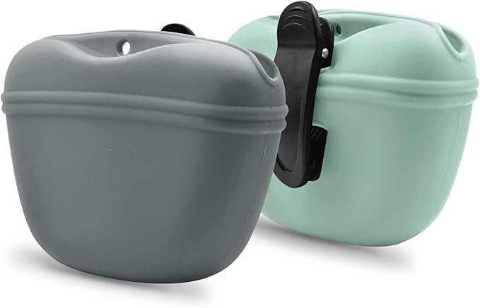 AUDWUD Silicone Dog Treat Pouch,with Training Clicker,Clip on Portable Train Container,Convenient Magnetic Buckle Closing