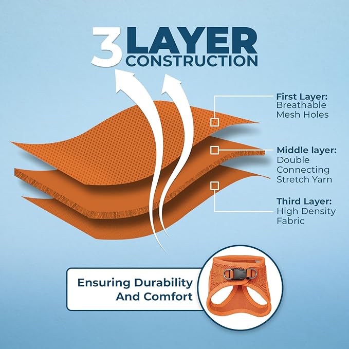 - ALL WEATHER MESH: Made with a soft, breathable air mesh, this lightweight pet harness is perfect for walks all year round.