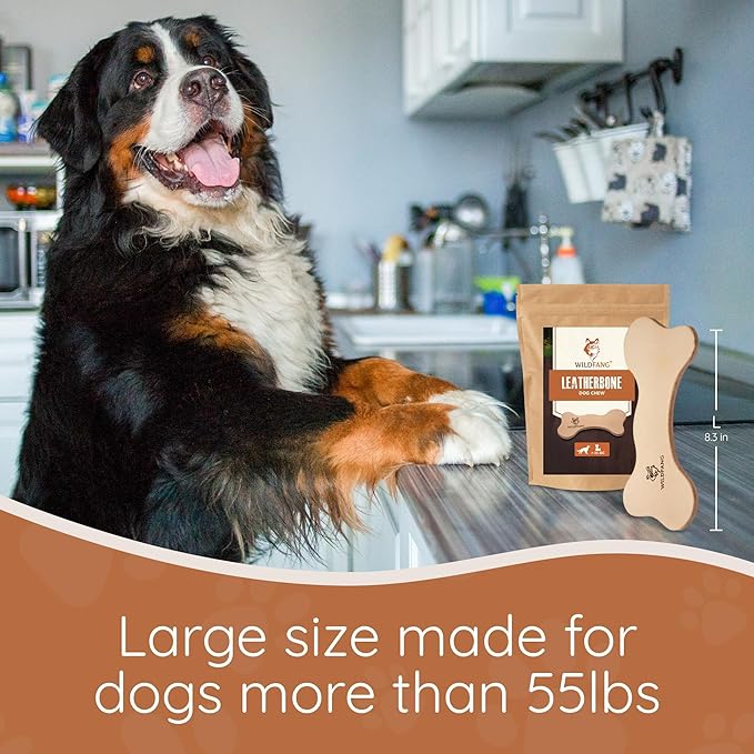 - SAFE, NATURAL ALTERNATIVE TO WOOD & PLASTIC – Unlike wooden sticks that can splinter or rawhide that can swell in the stomach, the Wildfang leather bone offers a safer chewing experience. Its unique texture and natural leather scent keep dogs engaged while providing a durable chew that wears down gradually. A healthier, low-risk alternative to synthetic nylon bones, antlers, or brittle chew toys, this dog leather toy is suitable for everyday play under supervision.