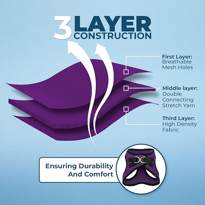 - ALL WEATHER MESH: Made with a soft, breathable air mesh, this lightweight pet harness is perfect for walks all year round.