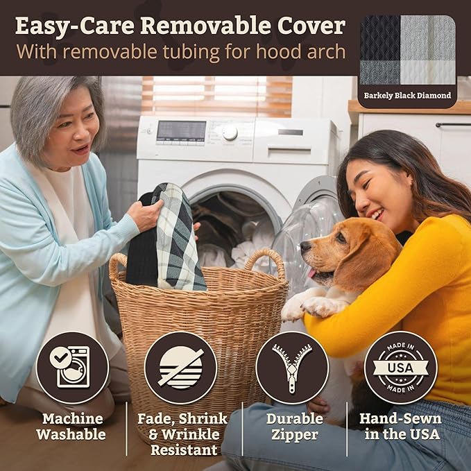 - WEATHERPROOF FABRIC. This bed features our WAG cover, which is made with a strong, durable, nylon material that is completely weather-proof and still luxuriously comfortable. Our WAG dog covers are made with a soft poly/cotton cover treated to be water- and fade-resistant, making these the perfect indoor/outdoor dog beds! To clean, just remove the plastic rod from the hood and unzip the easy-off cover to machine wash and hang dry. This high-quality dog bed will hold up for years!