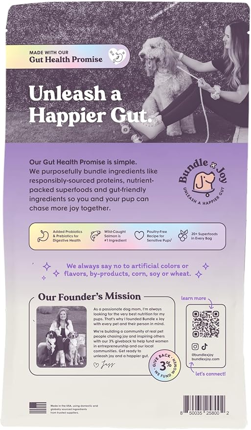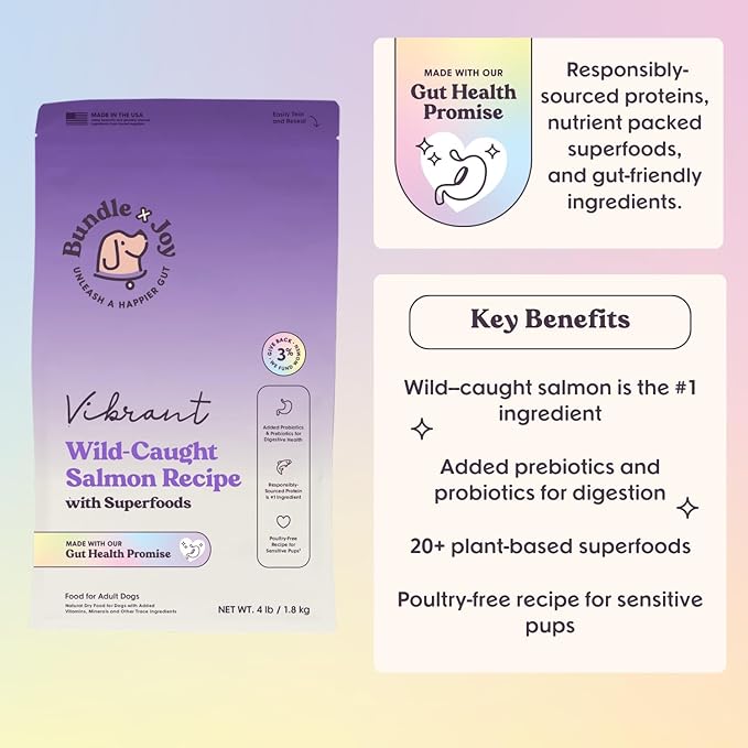 Bundle x Joy Vibrant Salmon Probiotic Dog Food Dry, 4lb Bag, Allergy and Gut-Friendly Adult Kibble for Digestive Health with Wild-Caught Salmon, 20 Plant Based Superfoods, Beef and Poultry Free