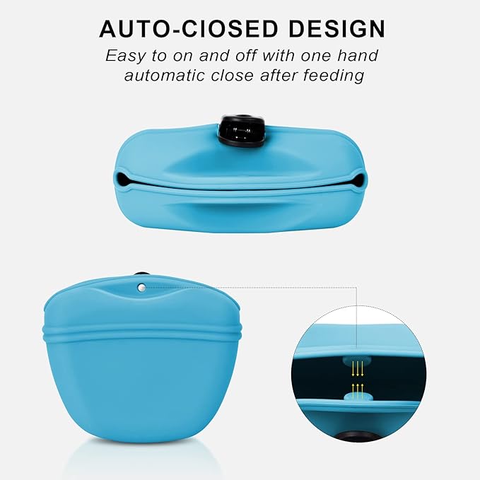 - 🐕Silicone Dog Treat Pouch🐕 - The silicone dog treat pouch is made of food grade silicone,it can contact dry and wet food directly,safe and healthy. It’s easy to on and off with one hand, automatic close after feeding.With upgrated clip,It is easy to carry,not easy to fall off.Dish washer safe and easy to clean,The large opening design and soft silicone material make the pet pouch easy to reverse to clean the inner easily and thoroughly.