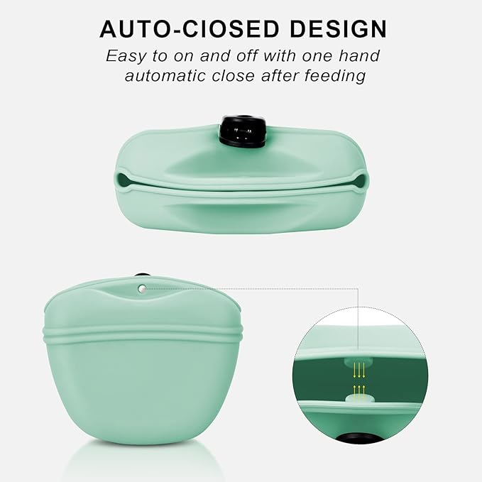 - 🐕Silicone Dog Treat Pouch🐕 - The silicone dog treat pouch is made of food grade silicone,it can contact dry and wet food directly,safe and healthy. It’s easy to on and off with one hand, automatic close after feeding.With upgrated clip,It is easy to carry,not easy to fall off.Dish washer safe and easy to clean,The large opening design and soft silicone material make the pet pouch easy to reverse to clean the inner easily and thoroughly.