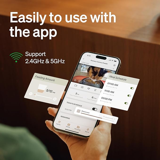 - Dual WiFi Connection & Anti-Blockage Design: Supports both 5GHz and 2.4GHz WiFi for stable connectivity. The patented food outlet and infrared detection system prevent food clogging, ensuring every meal is delivered on time without interruptions.