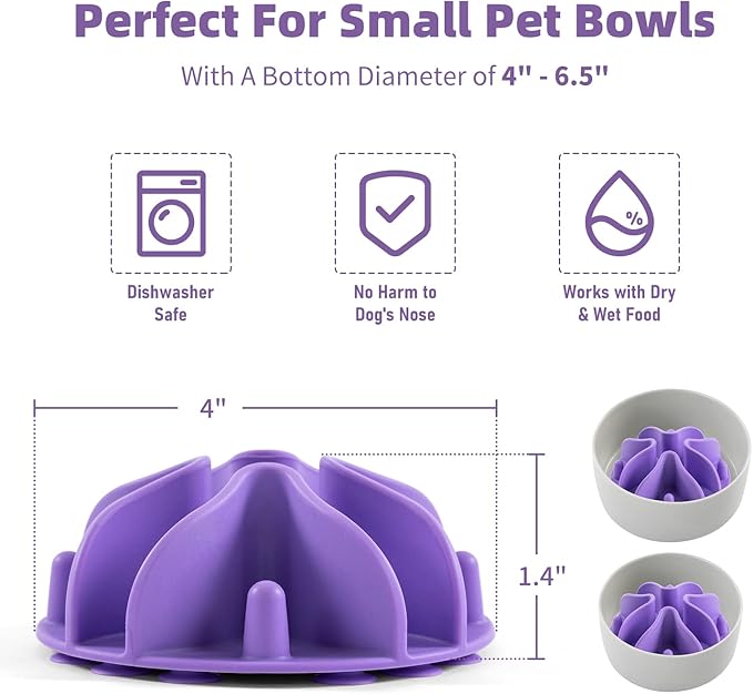 - Fits Small Size Dog Bowls: The bottom of the dog slow feeder insert diameter 4 inches (10 cm). Suitable for dog bowls with a bottom diameter of 4" - 6.5". Ideal for small dog bowls