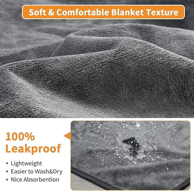 - Multiple Uses: 4 pcs of reusable 24" x 36" dog potty pet training pads. Perfect for house-breaking, training puppies, protecting crates and carriers, whelping, post-surgery, incontinence, diabetic dogs, protecting furniture from pet fur and dirt, lining kennels and playpens, placing under food bowls and litter boxes and easily fold up for mess free travel with your puppy!