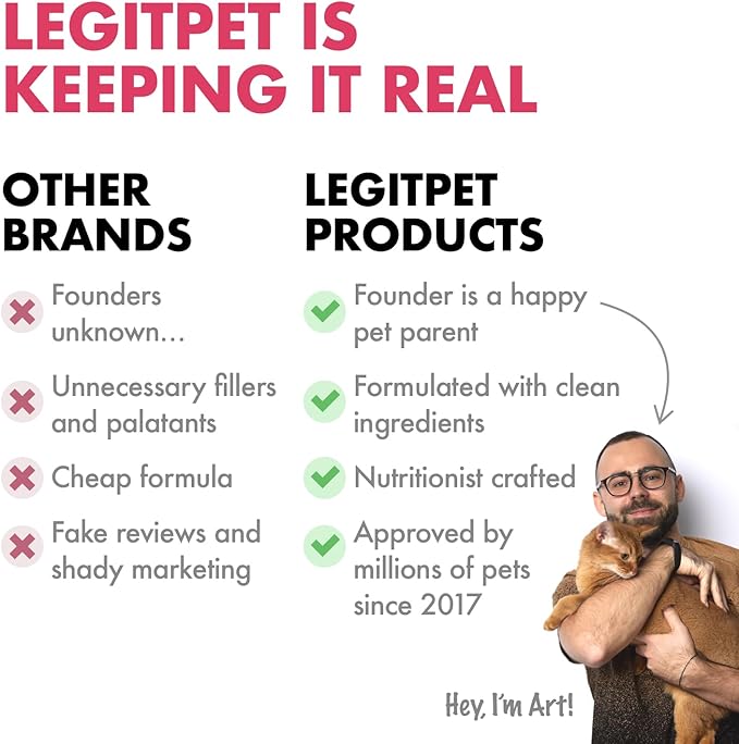 - How To Use: Our soft chews make it easy to give your dog the daily support they need without the hassle of pills or liquids. Our care is evident in our pledge to provide your furry friend with a delectable taste and reliable results. LEGITPET Cranberry UTI Chews are crafted using premium, all-natural ingredients, and are free from corn, wheat, and soy. We also steer clear of artificial preservatives, colors, and flavors, ensuring that your pet receives only the best.