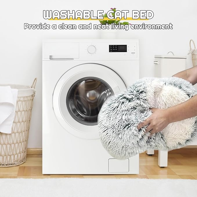 - 【Upgraded Thicken Cover】The appearance of calming cat beds is similar to covered cute donuts. Cushioned, cozy and excellent value for money. The half cave design with non-collapsed plush ceiling is more suitable for pets who like to nest in corners and increase their sense of security. Try to spray a bit of catnip on the bedding and your cat will love it!