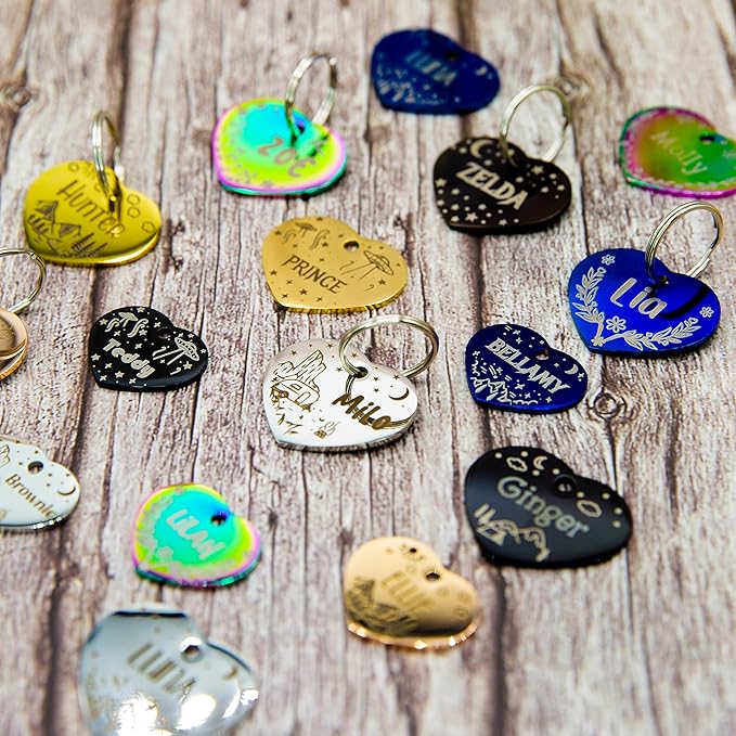 - Our engraved dog cat tags personalized solid stainless steel have color plating in Gold, Rose Gold, Blue, Black, Nebula are incredibly durable and long-lasting.