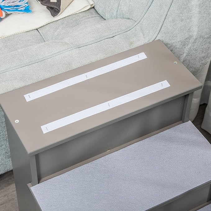 PawHut Pet Stairs, Small Pet Steps with Cushioned Removable Covering for Dogs and Cats Up to 22 Lbs., Grey