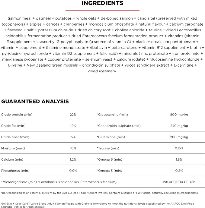 Go! Solutions Skin + Coat Care, Dry Dog Food, Large Breed Adult Salmon Recipe with Grains, 12 lb Bag