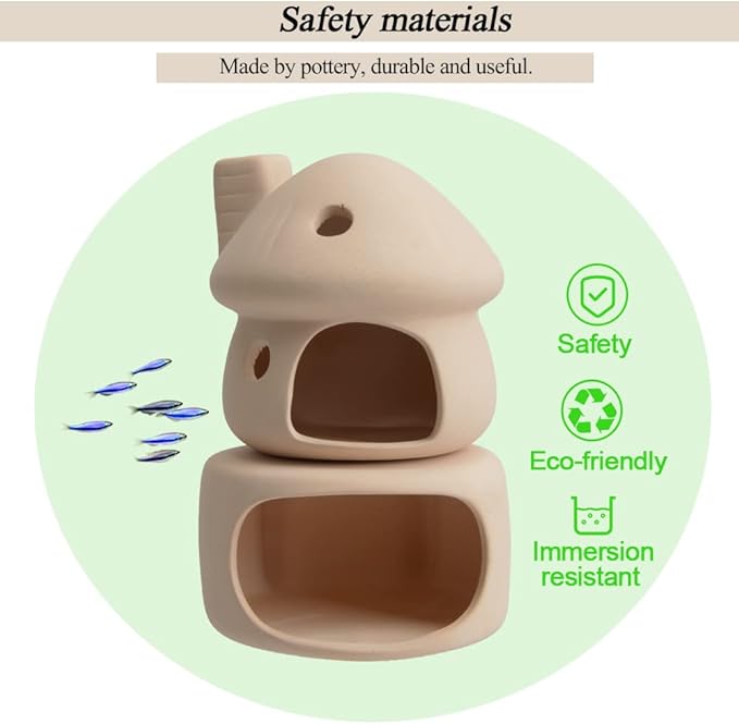 - The mushroom house with cave set provides shelter, hiding spots, and spawning sites for fishes and shrimps.Create a natural and living environment