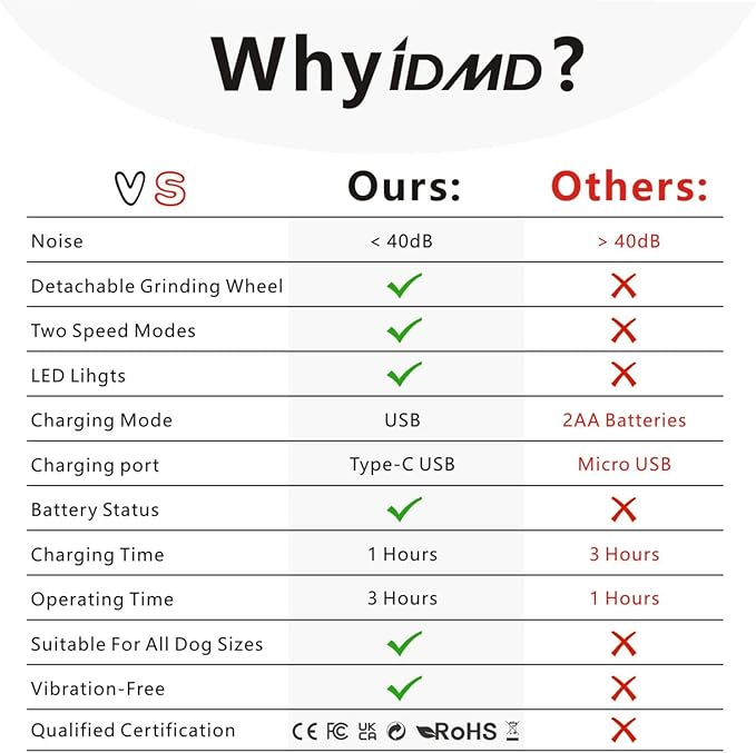 - 2. Low noise and vibration: It features low noise and vibration technology to help reduce your pet’s fear and anxiety, making the trimming process more tolerable.