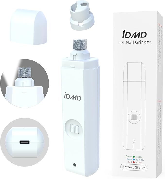 Dog Nail Trimmers-Powerful 2-Speed Dog Nail Grinder-with Safe LED Lighting and Battery Capacity Indicator Light & Type-c USB Rechargeable Quiet pet Nail Grinder Clipper for Dogs/Cats (White)