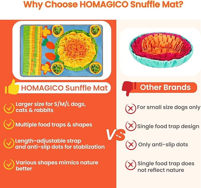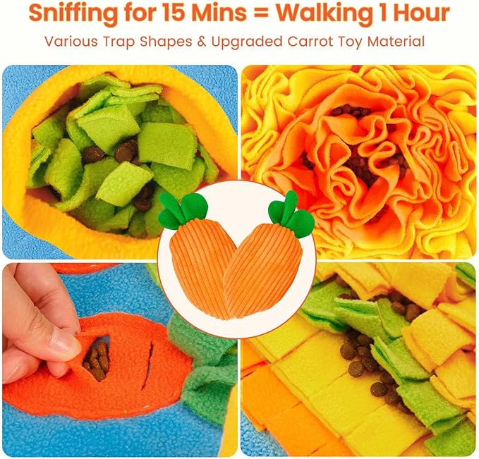 - 【Includes 2 Squeaky Carrot Toys & Free Dog Leash】- This dog puzzle toys for large dogs toy comes with a free 6ft dog leash and 2 squeaky carrot toys. This dog snuffle mat is the perfect distraction for keeping them away from chewing furniture or being depressed. Enjoy playing with your pets both indoors and outdoors.