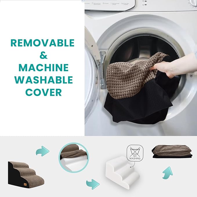 - Easy to Care: Our dog stairs are designed with a zip which makes it easy and convenient to put the cover on and take it off. Machine wash and tumble dry the pet stairs cover to give your pet a comfortable and clean pet steps.