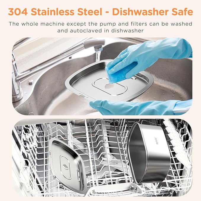- 【304 Stainless Steel Material】Cat water fountain is made of 304 stainless steel, which is safer and more durable than plastic cat water dispensers. Pet fountain can be used for many years, and the stainless steel material makes it less likely to have any scratches or corrosion. Specially, it can withstand high temperature cleaning to ensure your pet's health.